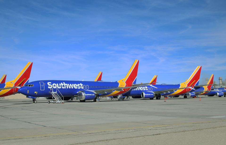 VICTORVILLE, CA – 31 MARZO: Gli aerei di linea Boeing 737 MAX della Southwest Airlines sono seduti al Southern … Logistics Airport il 31 marzo 2020, a Victorville, CA. Southwest Airlines ha dovuto immagazzinare temporaneamente tutta la sua flotta di 737 MAX a causa dell’ordine di messa a terra in tutto il mondo a causa di un sistema di controllo automatico del volo difettoso che si sospetta abbia contribuito ai tipi di incidenti in Etiopia e Indonesia che hanno ucciso 346 persone. (Foto di Barry Ambrose/Icon Sportswire via Getty Images)