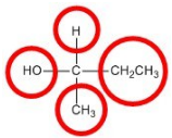 Przedmioty, które mają nieprzesuwalne lustrzane odbicia, nazywane są chiralnymi. Podczas badania cząsteczki, atomy węgla z czterema unikalnymi grupami są uważane za chiralne. Spójrz na poniższy rysunek, aby zobaczyć przykład chiralnej cząsteczki. Zauważ, że musimy spojrzeć poza pierwszy atom dołączony do centralnego atomu węgla. Cztery kółka oznaczają cztery unikalne grupy dołączone do centralnego atomu węgla, który jest chiralny.